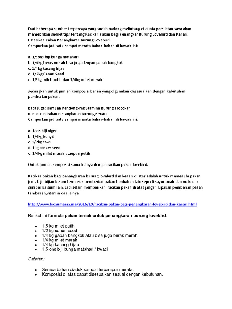 Gantang lovebird di area terbuka layaknya teras rumah/ taman. Pertumbuhan dan perkembangan burung lovebird dipengaruhi oleh pemberian pakan setiap harinya. Saat memutuskan untuk menjalankan usaha ternak lovebird, tentunya kita memerlukan modal yang cukup dan tentunya komitmen untuk telalten dalam melakukan pemeliharaannya. Cari produk makanan burung lainnya di tokopedia. Biasanya sayur pakcoy diberikan ke indukan lovebird yang sedang mengerami telurnya.